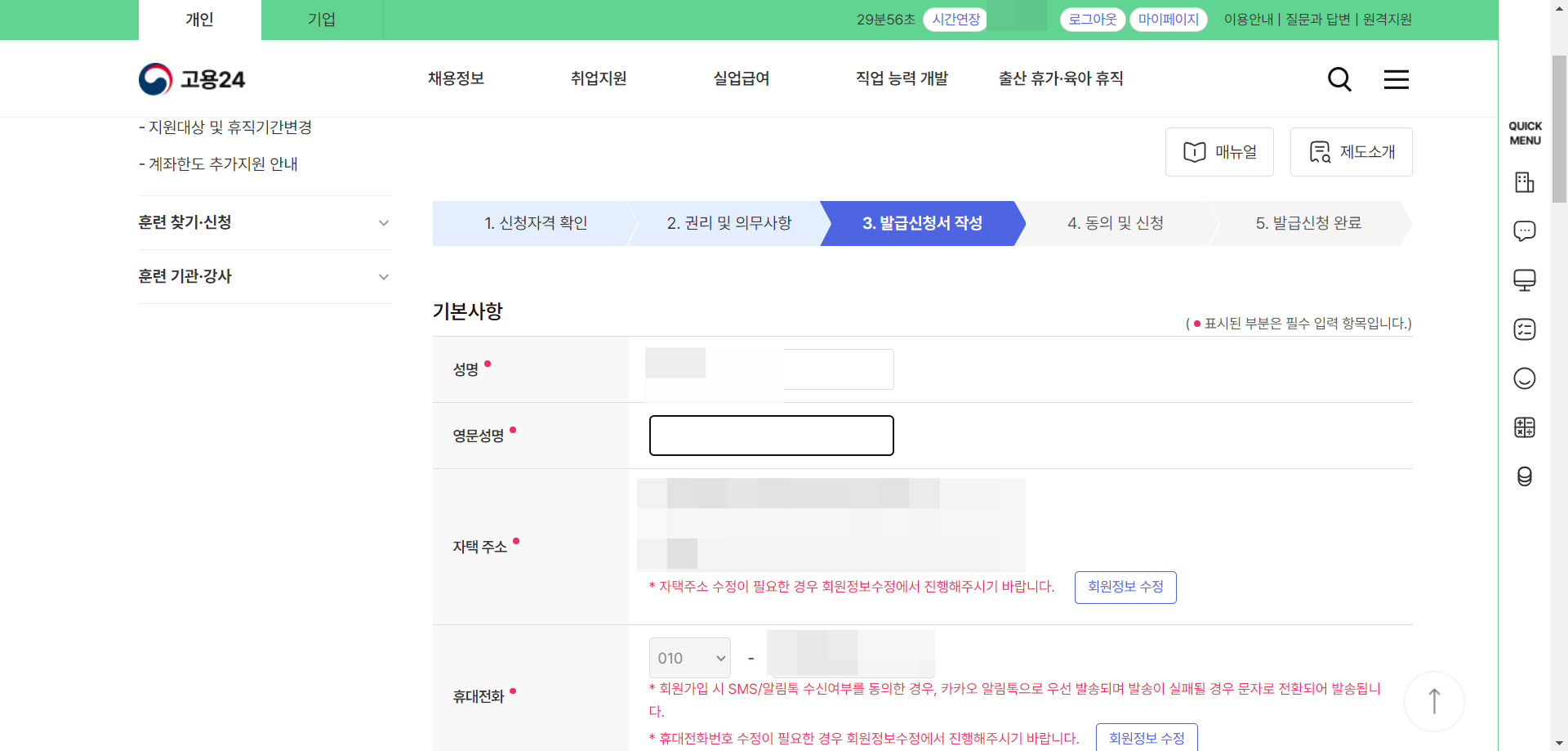 6. 발급신청서 작성, 동의 및 신청 순서에 따라 빈칸을 채우고 진행해 준다.