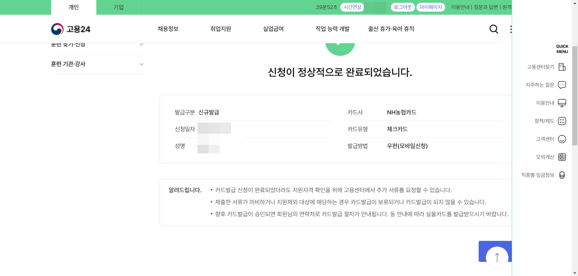 8. 신청 완료 후에는 본인이 신청했던 방법으로 카드가 발급된다.