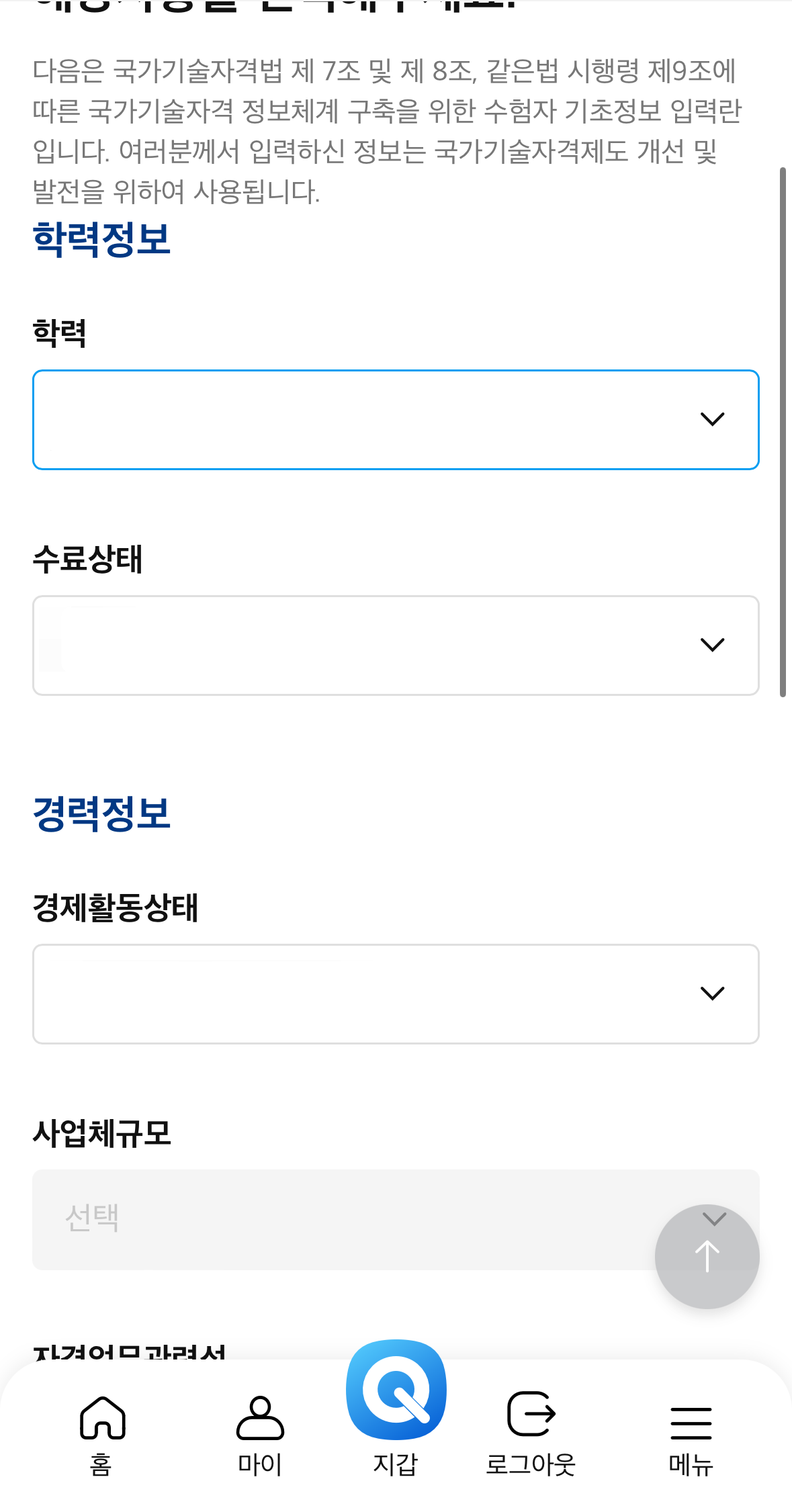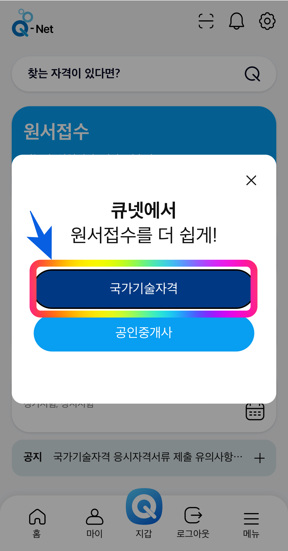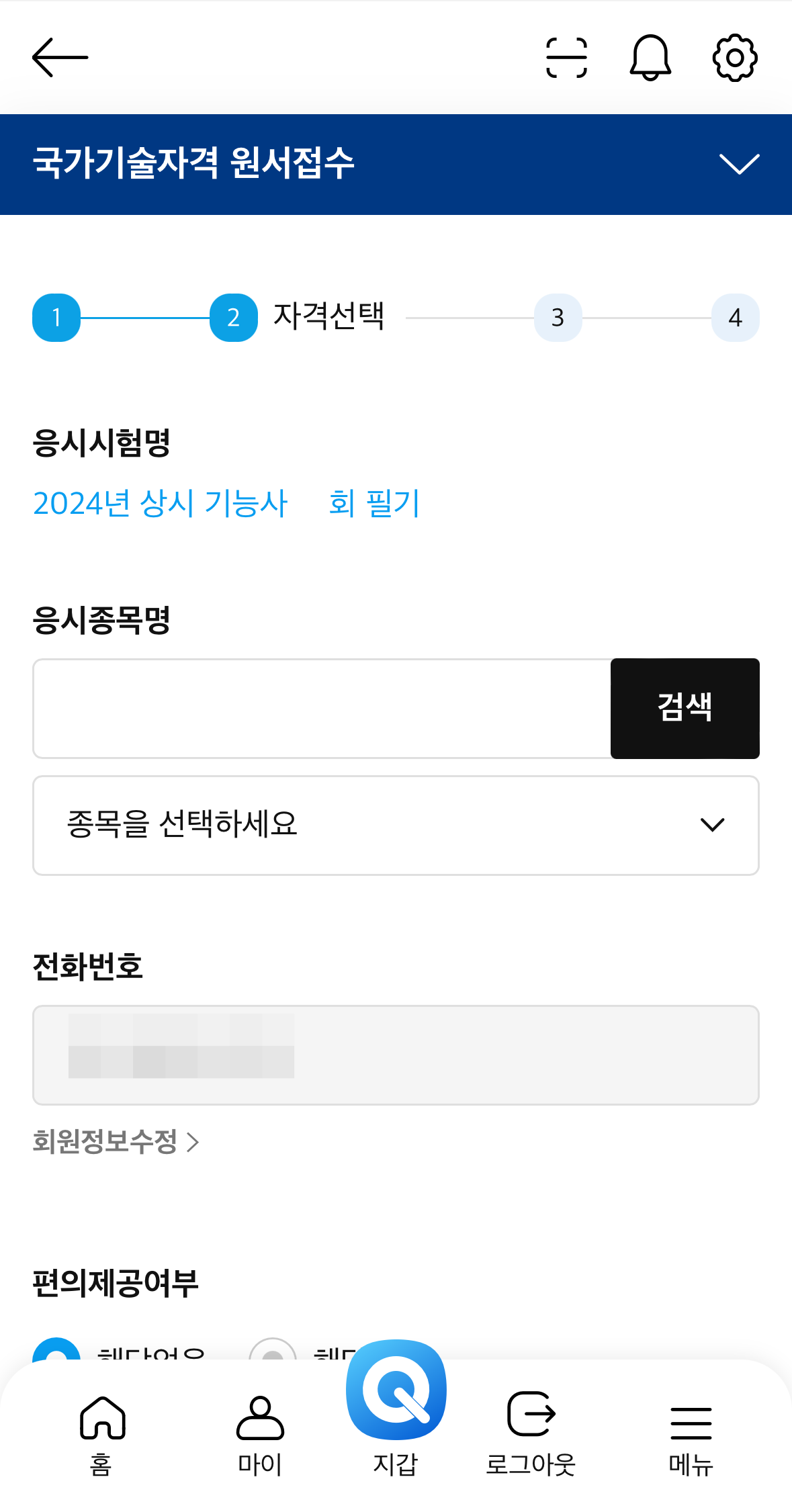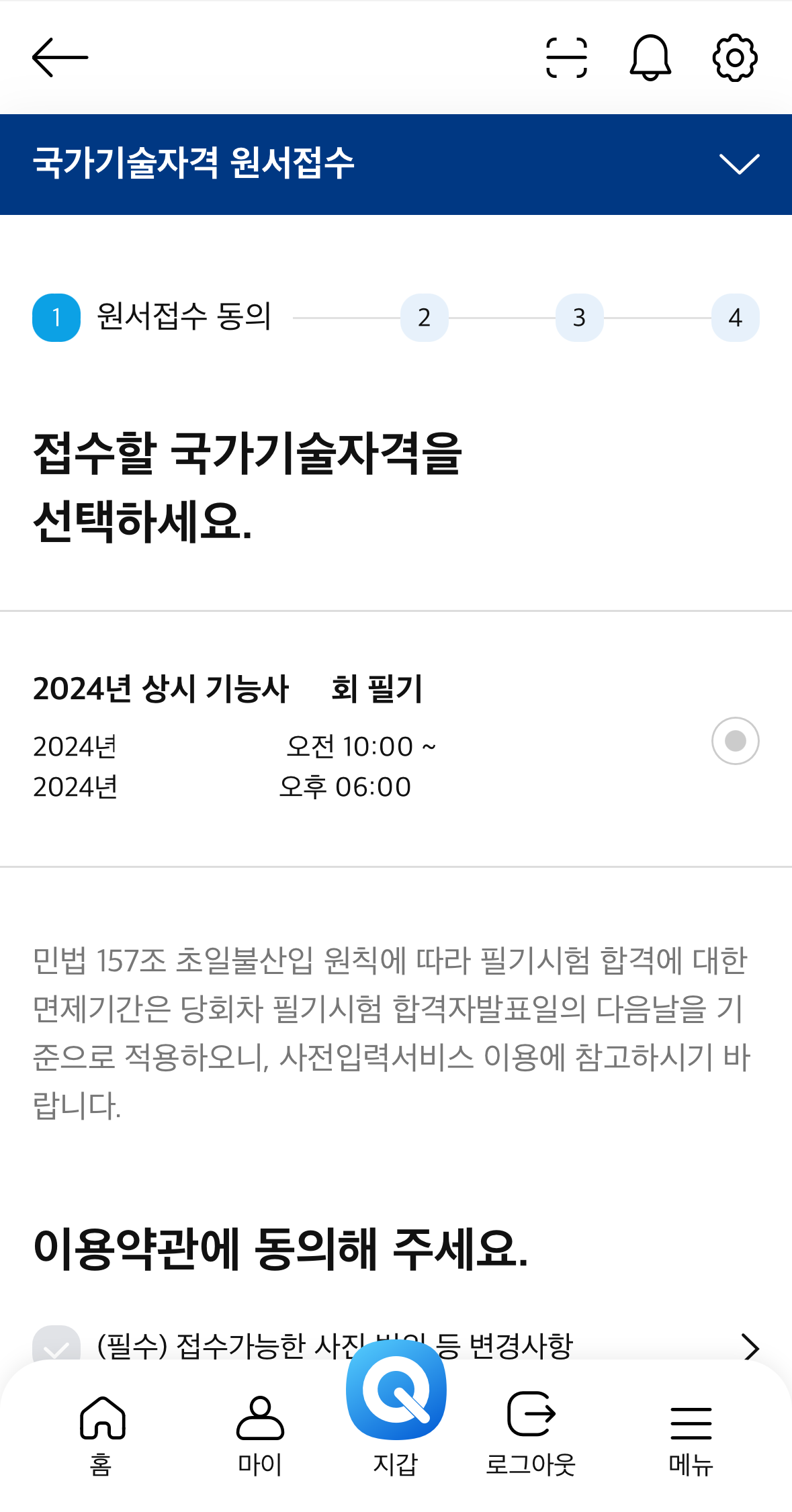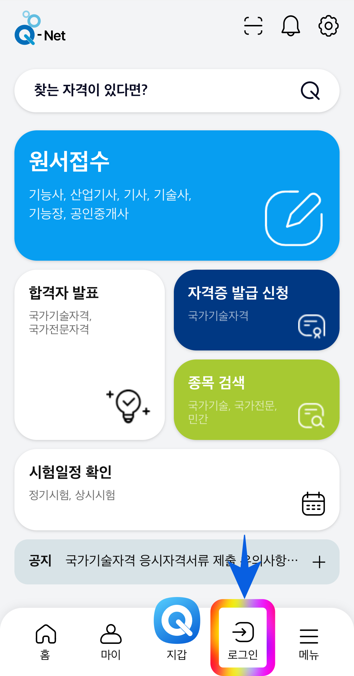 1. 큐넷 어플에 들어가서 로그인해 준다.