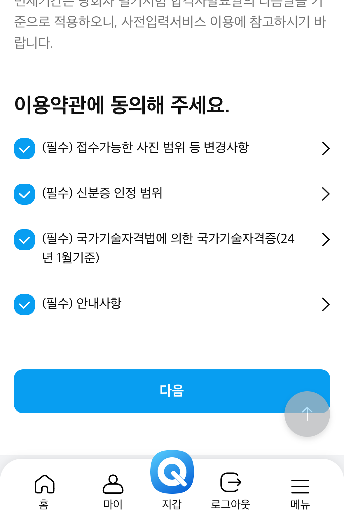 필기접수 방법(모바일 어플 기준)