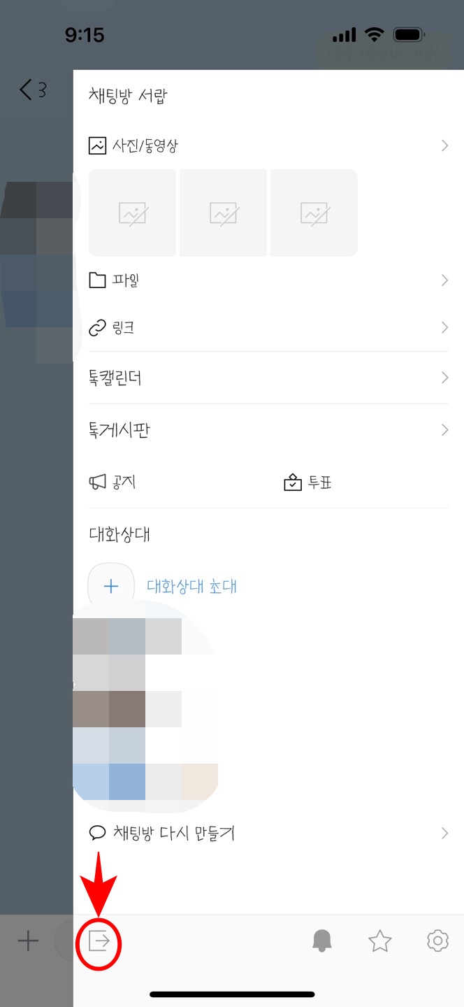 5. '나가기' 버튼을 눌러 채팅방을 빠져 나간다.
