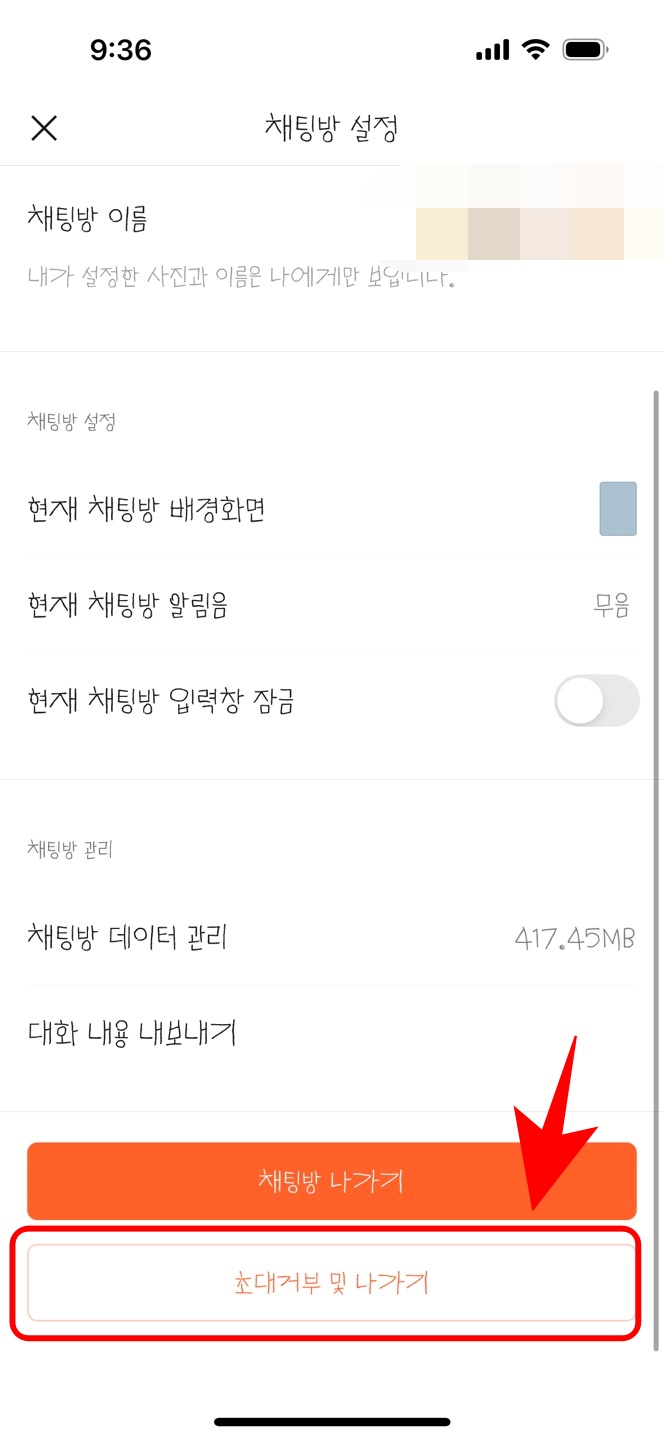 '초대거부 및 나가기' 기능을 사용하여 해당 채팅방의 재초대도 방지할 수 있다.