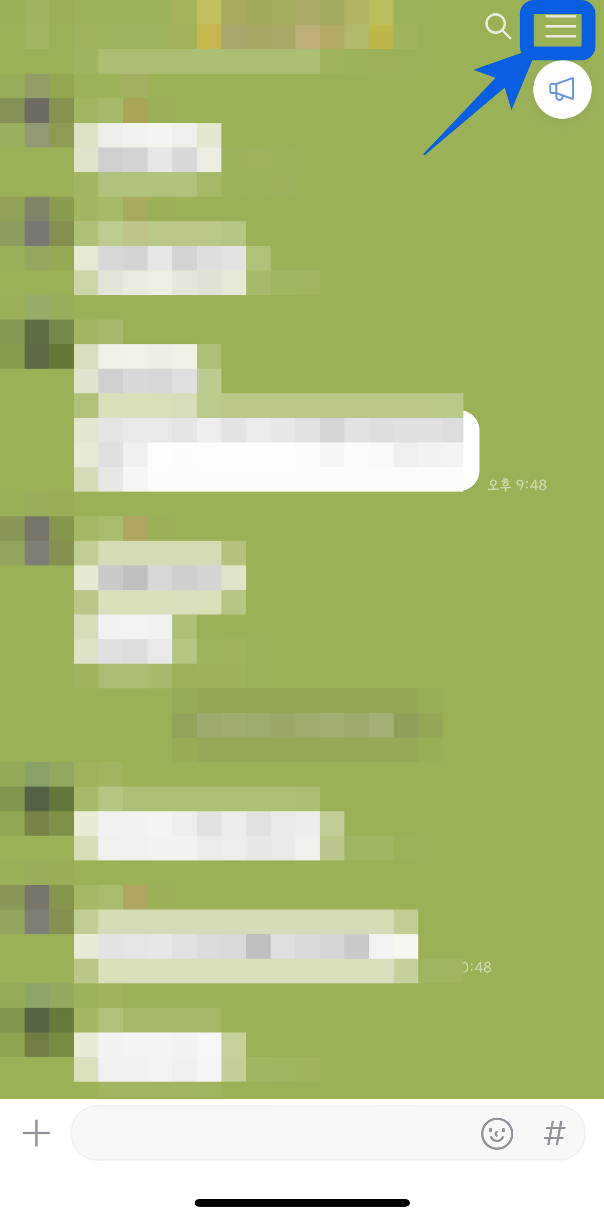 1. 카톡 대화내용 내보내기를 하고 싶은 채팅방에 들어가, 채팅방 우측 상단에 있는 메뉴를 눌러준다.
