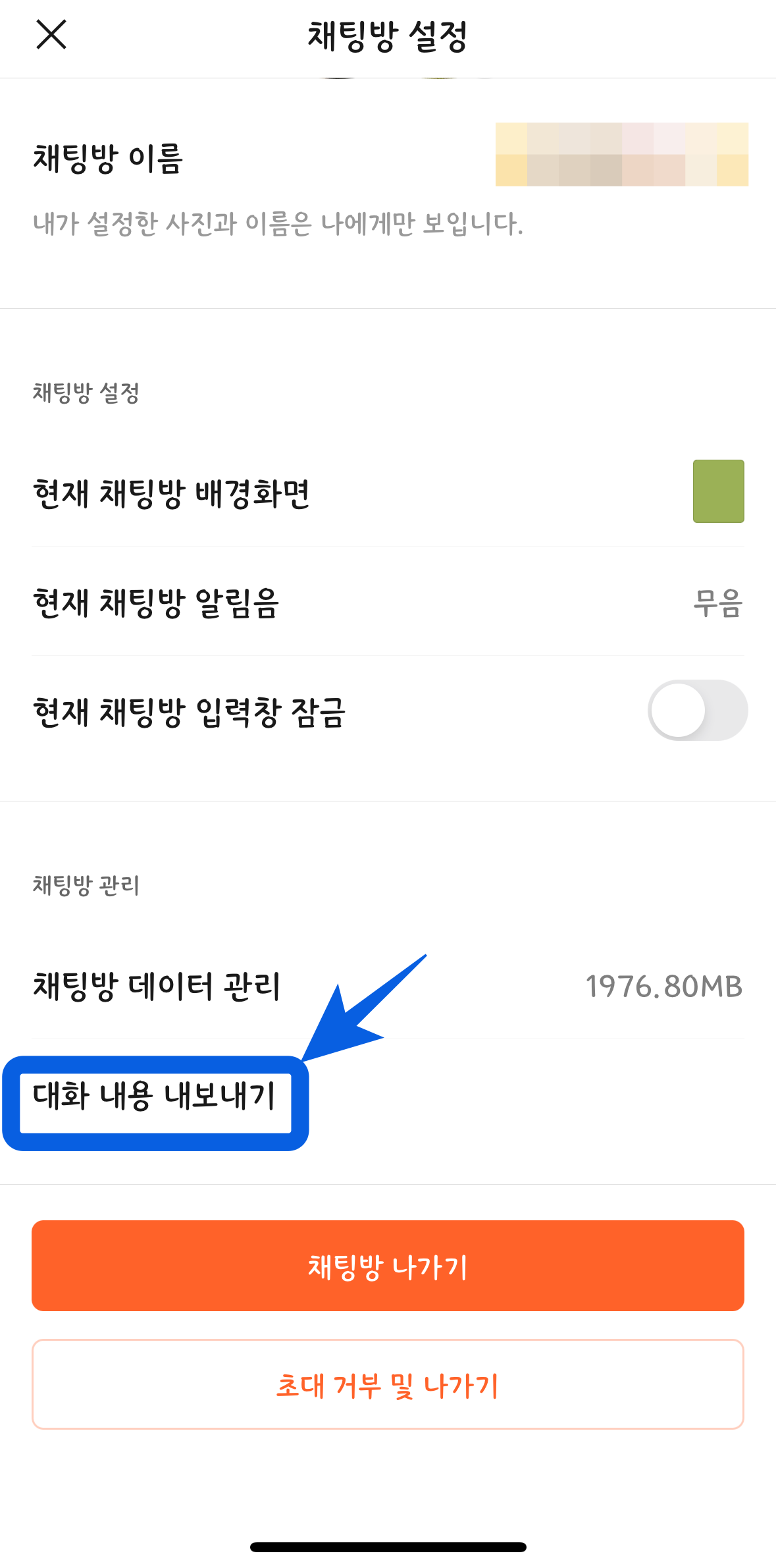 3. 하단에 위치한 '대화내용 내보내기' 항목을 눌러준다.