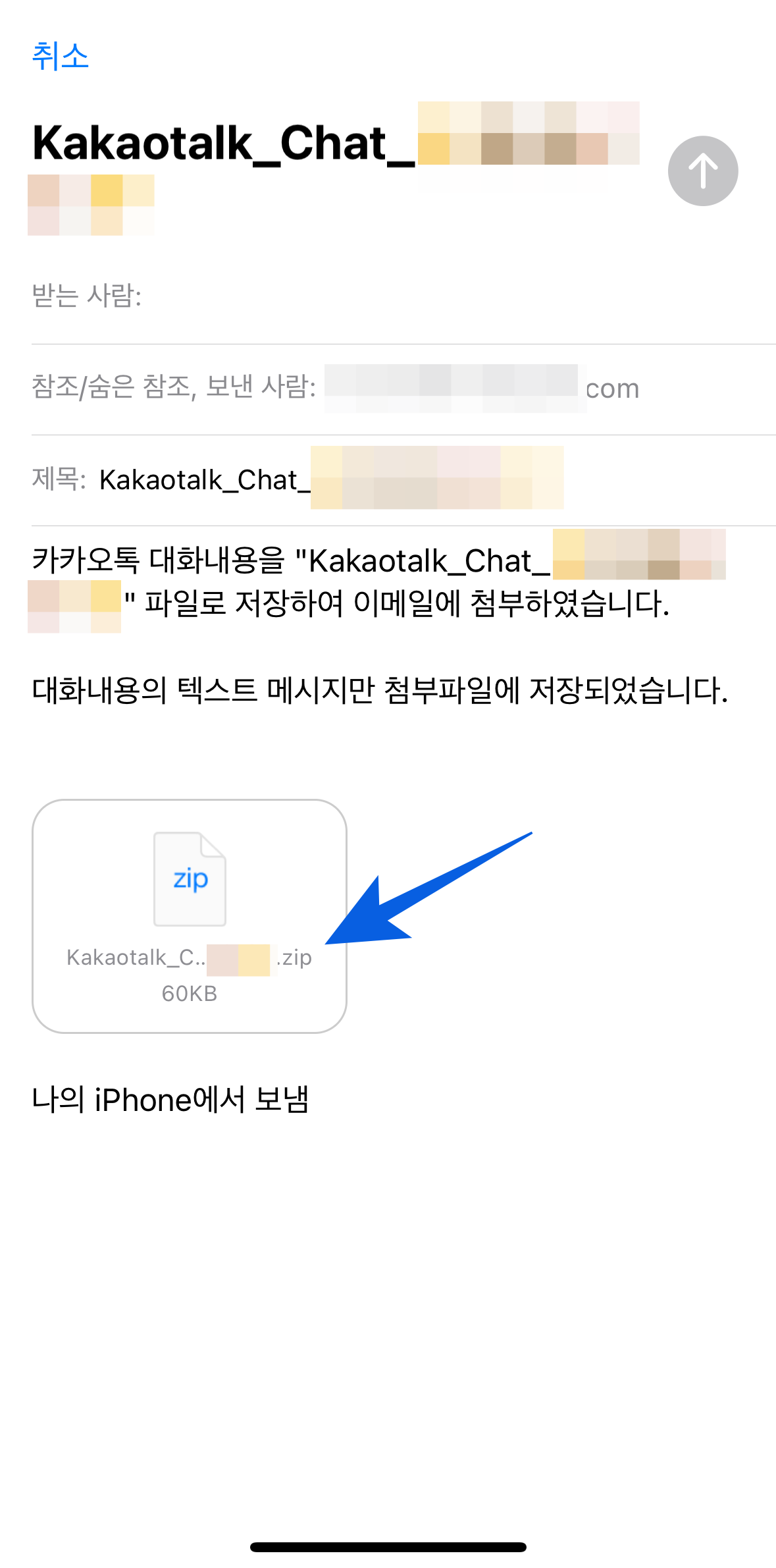 모바일에서 내보내기를 진행한 후 PC에서 이메일로 대화내용을 열어볼 수 있다.
