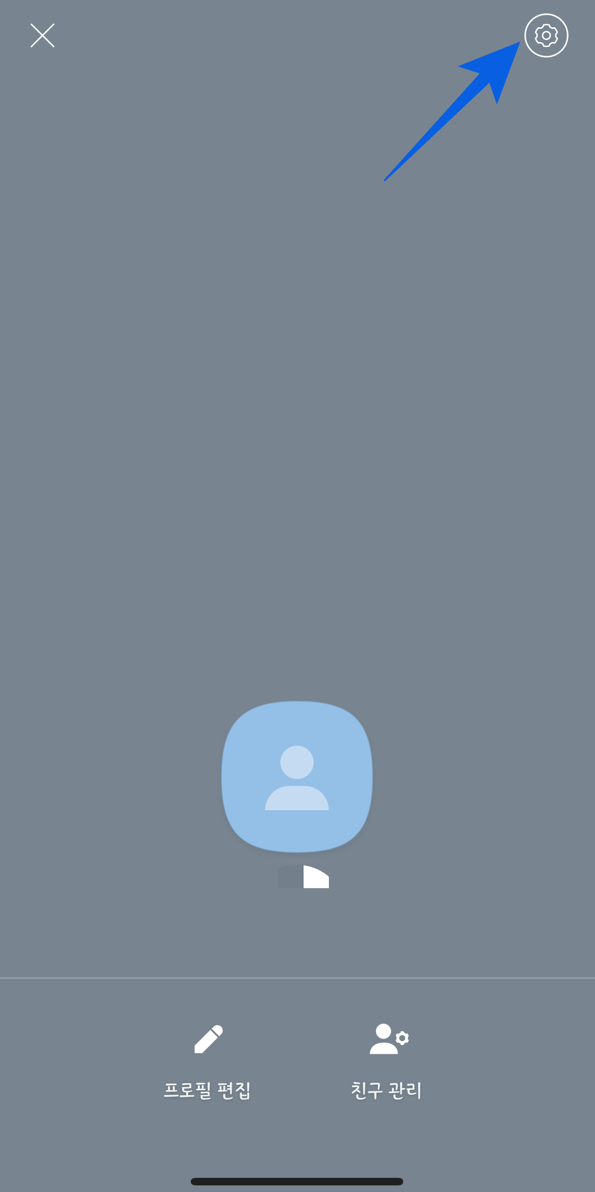 1. 멀티프로필 화면을 띄워준 후 우측 상단의 설정(톱니바퀴 모양)을 눌러준다.