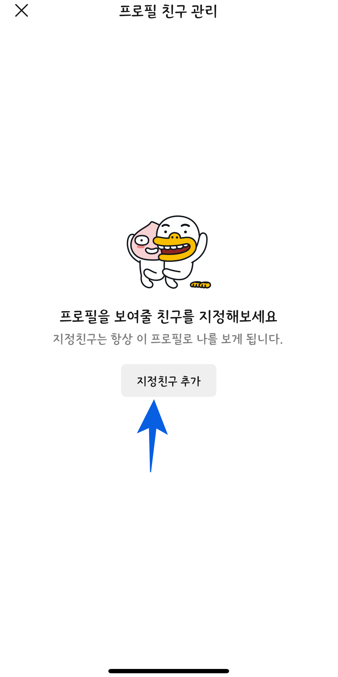 4. '지정친구 추가'를 선택하여 내가 프로필을 보여주고 싶은 친구 목록을 만든다.