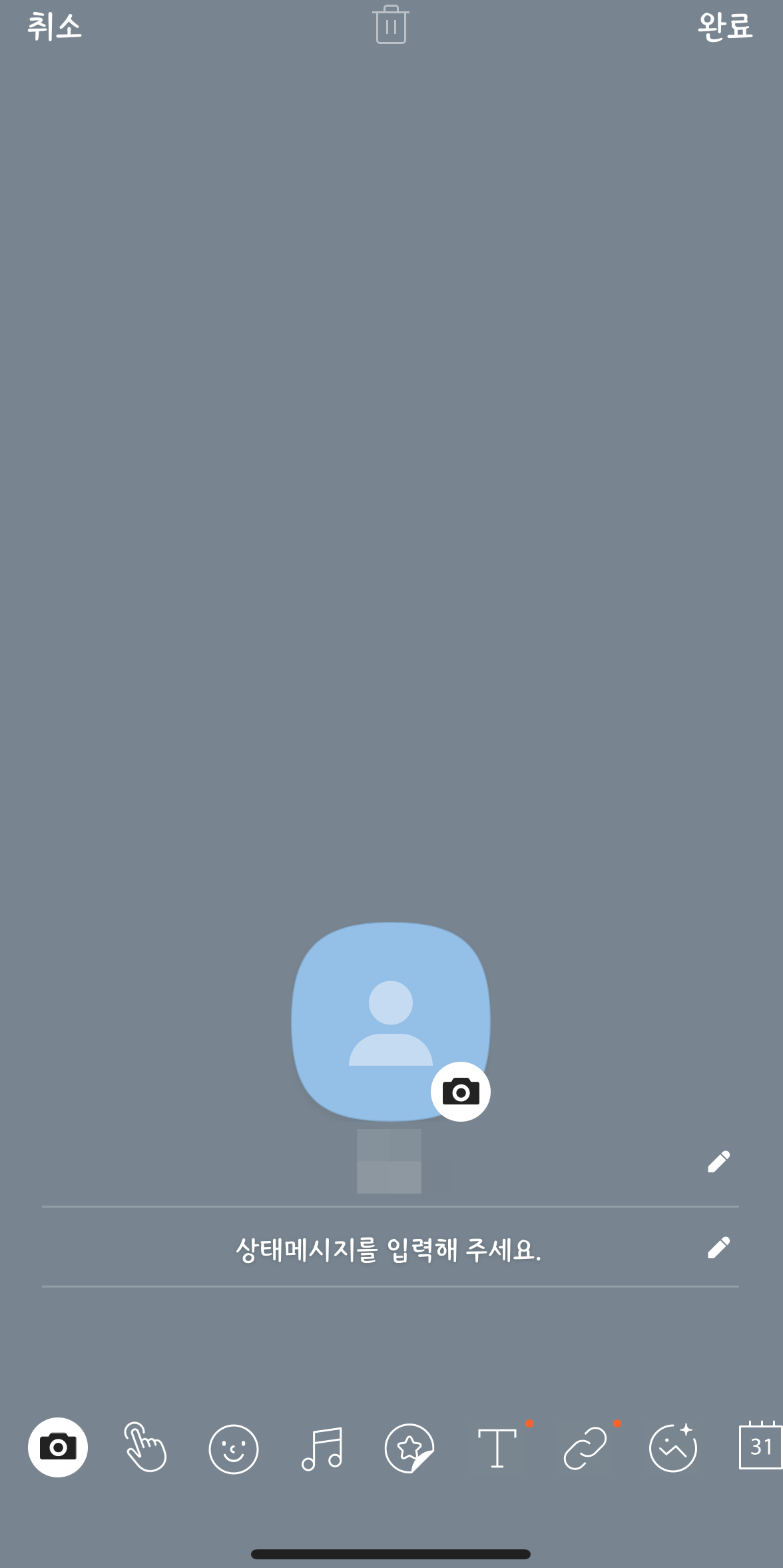 2. 프로필 설정이 뜨면 원하는 사진과 상태명 등으로 프로필 설정을 완료한다.