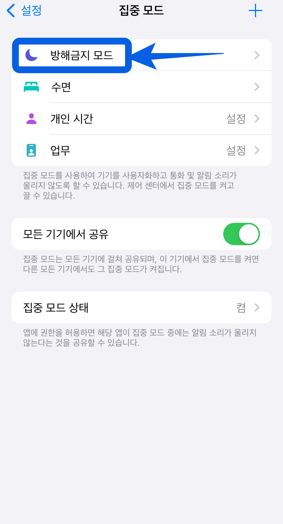 + '방해금지모드'일 경우 모든 알림 소리가 차단되므로 방해금지 모드 설정 또한 확인해 준다.