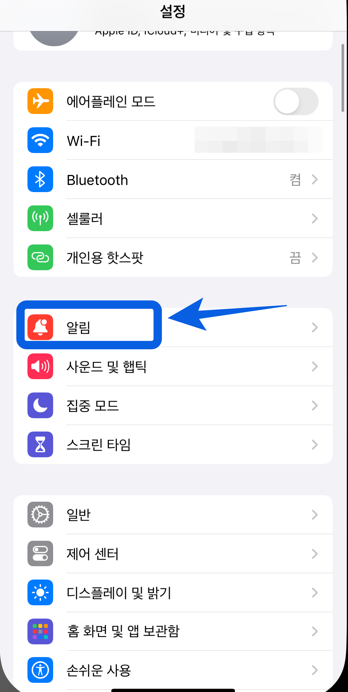 스마트폰 내 자체 알림 설정을 확인해 본다.